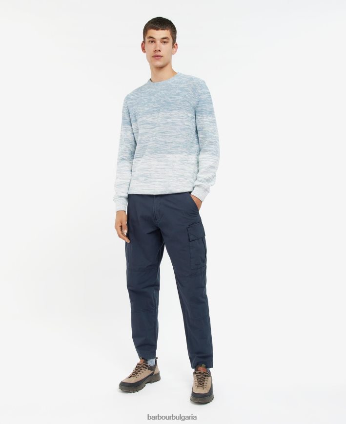 прахово синьо брадинг омбре плетен пуловер с кръгла яка 4FN2BH1123 мъже Barbour облекло