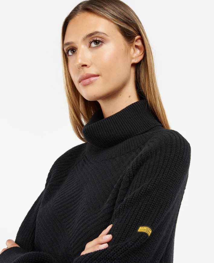плетката Barbour International Claremont се отличава с дизайн на ролка с геометрично ребро. демонстрирайки реглан ръкави и ребрени детайли по подгъва и маншетите, тази дреха предлага странични шевове с ципове за непоколебимо внимание към детайла.