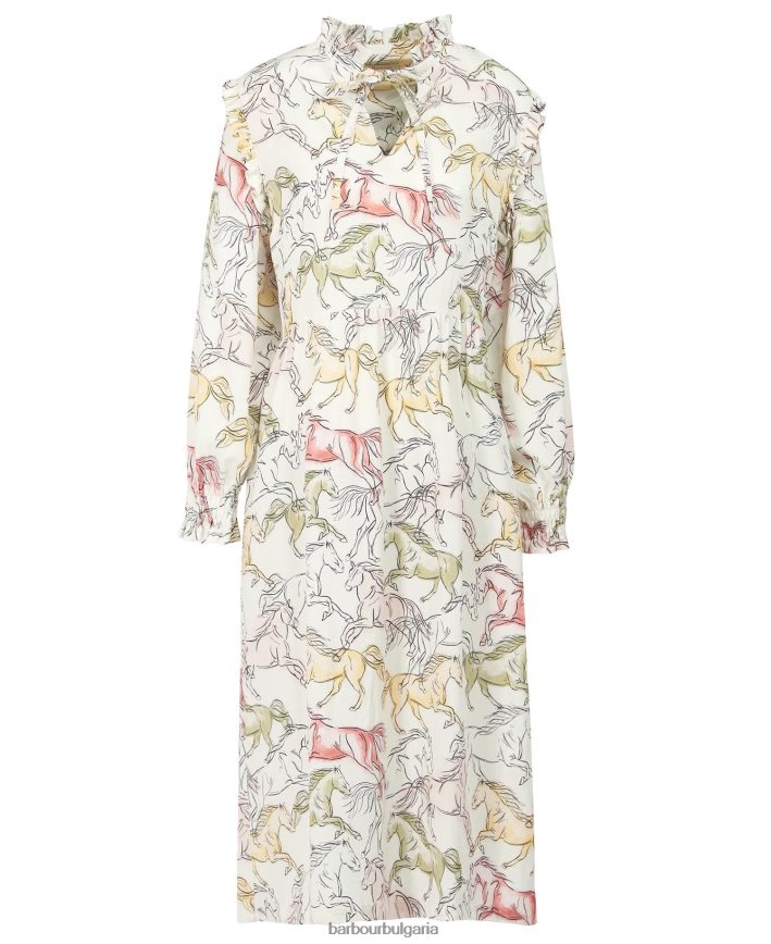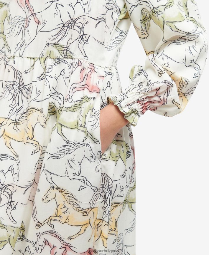 изкусна основна част от вашия гардероб, роклята barbour regia, проектирана от мека, дишаща материя и отлята с цветен конски принт навсякъде. завършен с набраздени гарнитури на врата, раменете и маншетите, този изявен стил върви перфектно както с ботуши, така и със сандали.