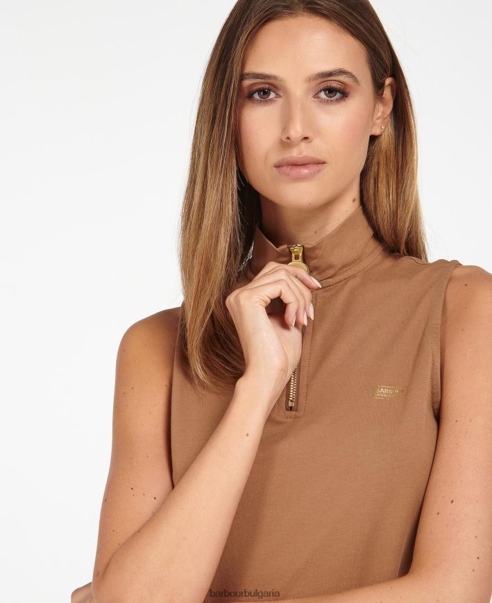 горната част на kasuki се отличава със стилен половин цип към врата на фуния, създавайки уникална естетика. тази дреха от смесен памук се отличава с маркова бродерия на гърдите за привлекателен подпис, докато дизайнът без ръкави означава, че е страхотна за наслояване върху горнища и трикотаж.